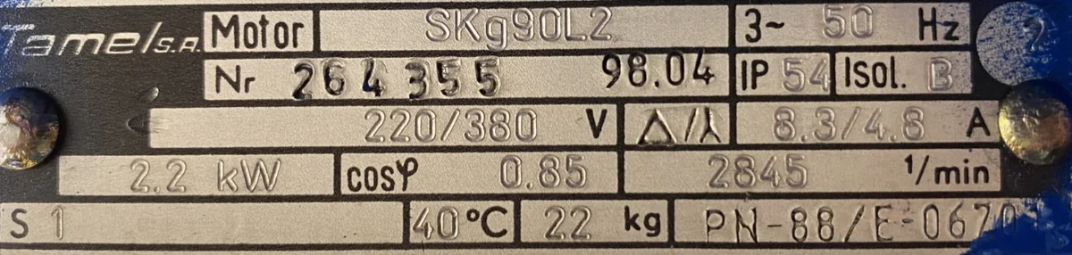 Silnik elektryczny Tamel o mocy 2,2 kW i prędkości obrotowej 2845 obr/min to sprawdzone i cenione rozwiązanie w polskim przemyśle. Tamel to renomowany krajowy producent, którego urządzenia od dziesięcioleci cieszą się opinią wyjątkowo trwałych i niezawodnych maszyn elektrycznych. Oferowany egzemplarz w stanie używanym stanowi doskonałą okazję do wyposażenia zakładu produkcyjnego w solidny napęd elektryczny w atrakcyjnej cenie, bez rezygnowania z jakości i wydajności.
