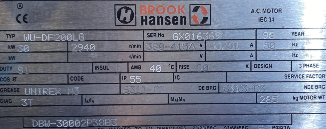 Silnik elektryczny trójfazowy 30 kW 2940 obr/min marki BROOK HANSEN reprezentuje potężną jednostkę napędową dla zastosowań przemysłowych wymagających dużej mocy. Ten używany napęd przeszedł gruntowną weryfikację techniczną, gwarantującą pełną sprawność operacyjną. Konstrukcja o wielkości mechanicznej 200 zapewnia odpowiednią sztywność i wytrzymałość, niezbędną przy eksploatacji urządzeń o wysokim obciążeniu.
