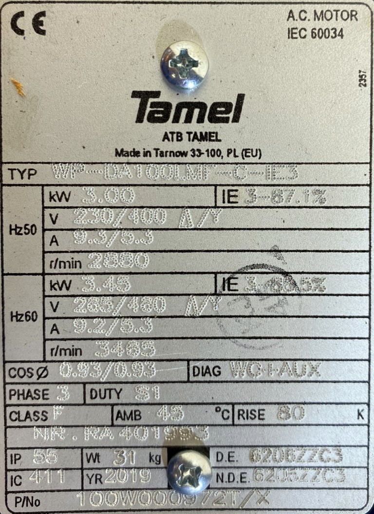 Silnik elektryczny trójfazowy 3kW 2880obr. marki Tamel z klasą sprawności IE3 to wysokowydajny napęd przemysłowy oferowany w stanie fabrycznie nowym. Ta jednostka napędowa charakteryzuje się zoptymalizowaną konstrukcją oraz podwyższoną klasą sprawności energetycznej IE3, która gwarantuje minimalizację kosztów eksploatacyjnych. Kompaktowa budowa o wielkości mechanicznej 100 oraz solidne wykonanie sprawiają, że urządzenie świetnie sprawdza się w różnorodnych aplikacjach przemysłowych.